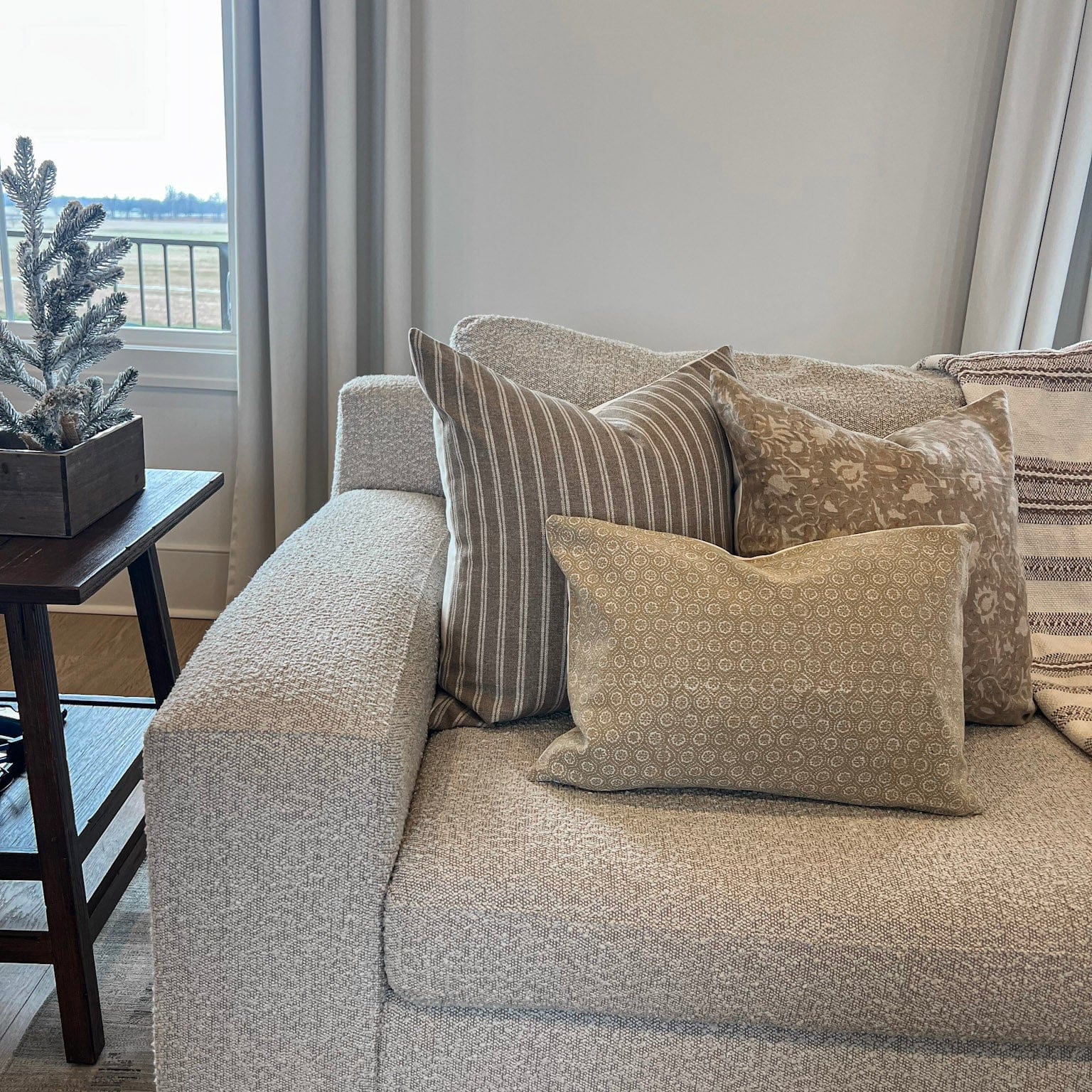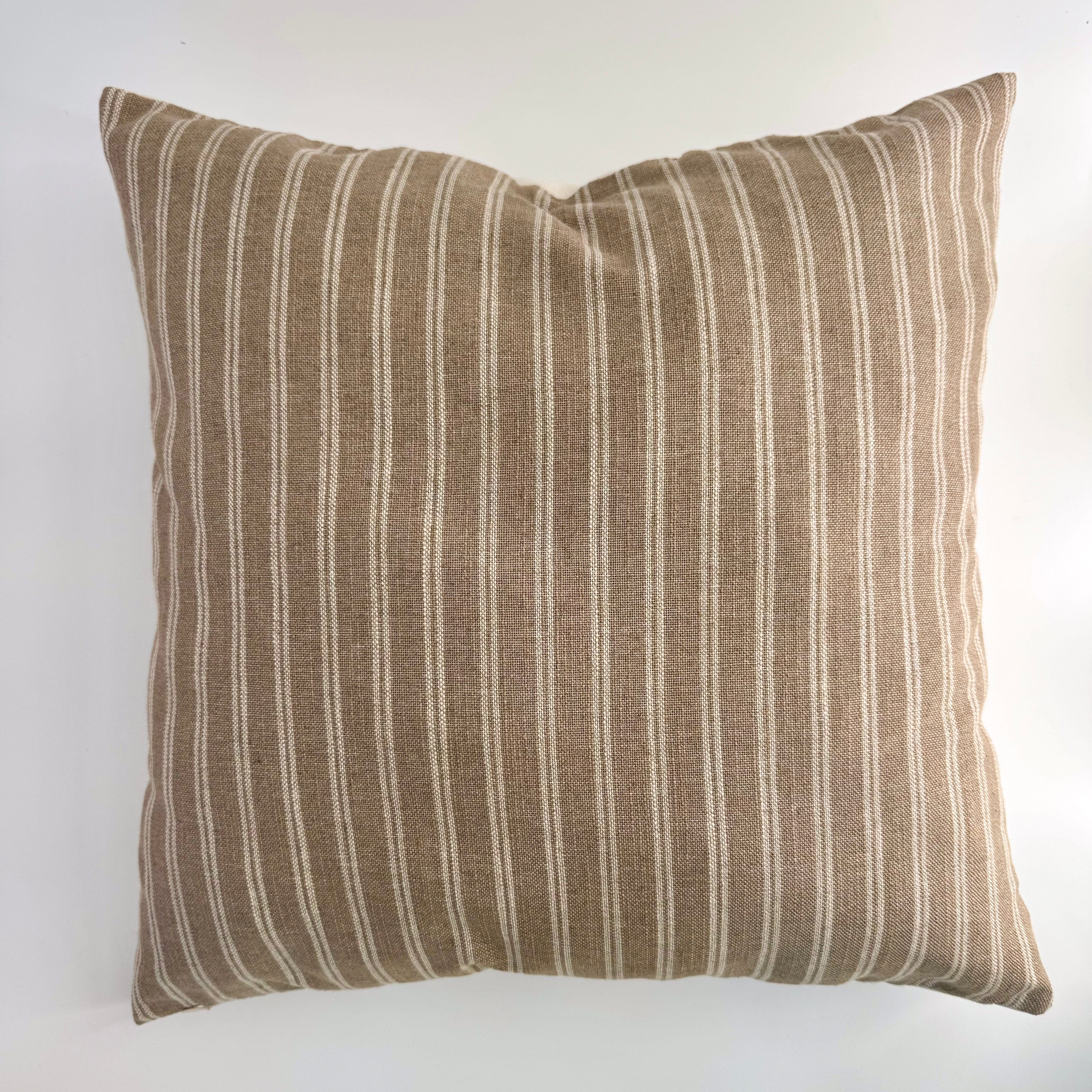 Meet the Francis, this multi-purpose, linen-blend fabric features a simple yet elegant cream double stripe pattern with a tan background, creating the perfect neutral piece. Pair this pillow cover with bold patterns or muted neutrals. With a luxe-meets-earthy aesthetic and organic texture, this beautiful material exudes a timeless style perfect for layering in every home.